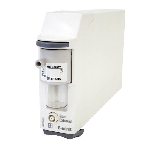 The GE E-miniC CO Module (#E-MINIC-00-EN) is a single width airway module that connects to GE CARESCAPE Monitors, including the GE B125, B450, and B650.