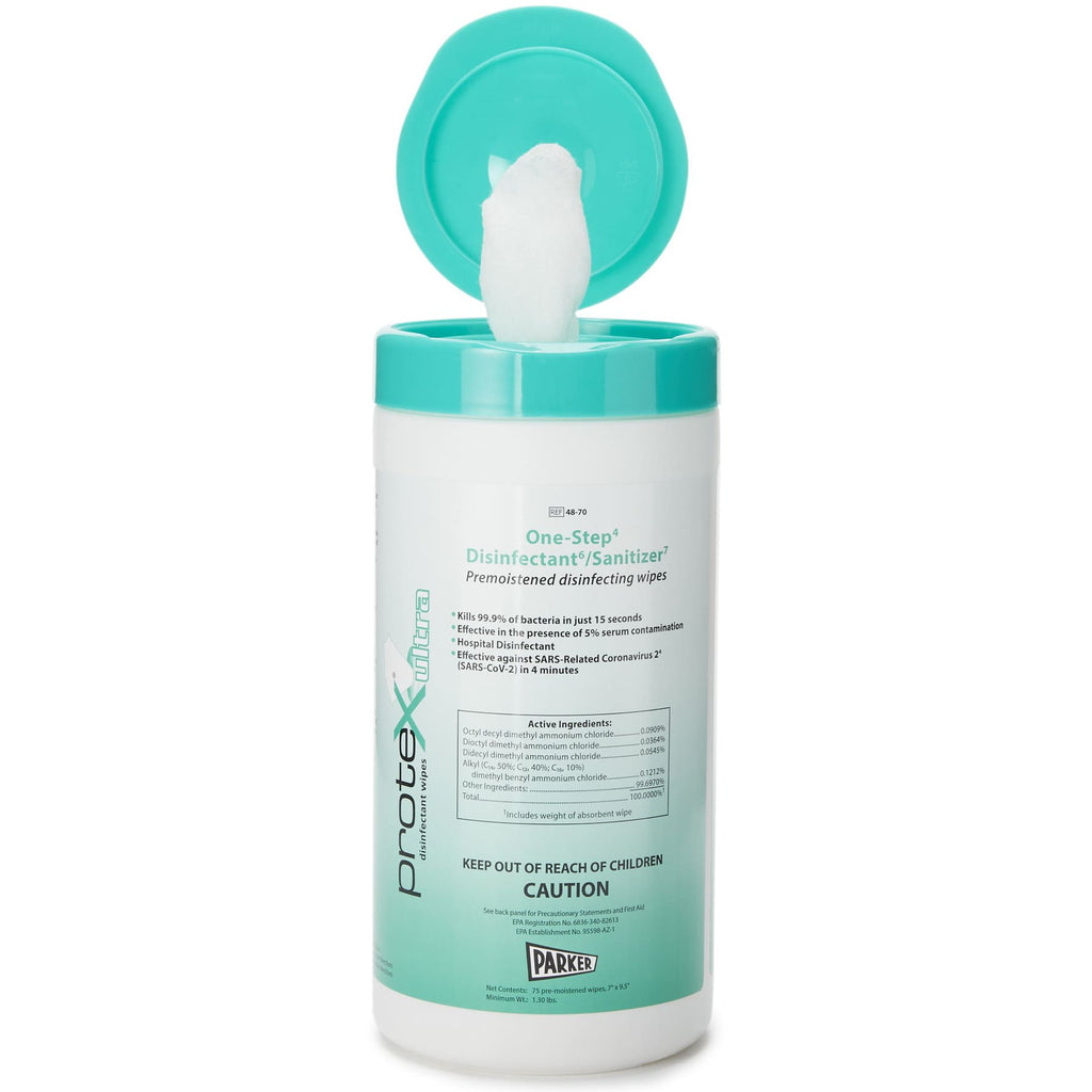 The Parker Protex Ultra Disinfectant Wipes are a powerful, one-step disinfectant/sanitizer, effective against a broad spectrum of pathogens, including HIV, H1N1, MRSA, SARS-CoV-2 virus (the cause of Covid-19), and many others.