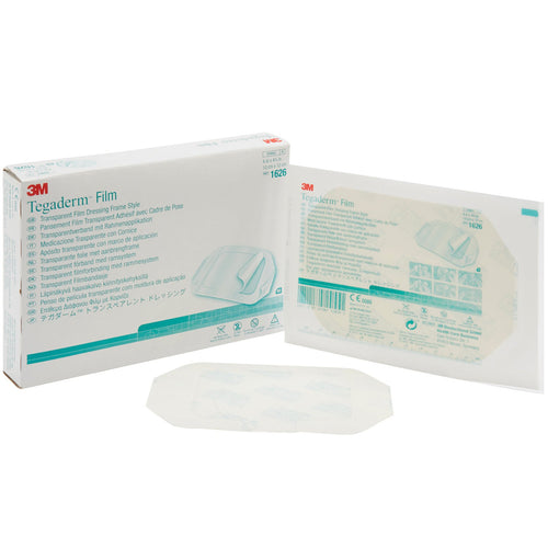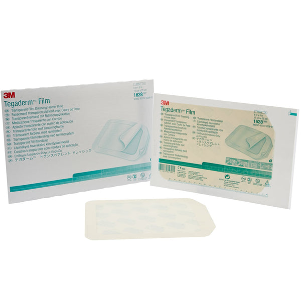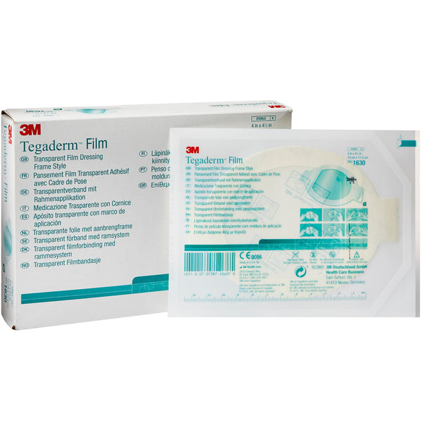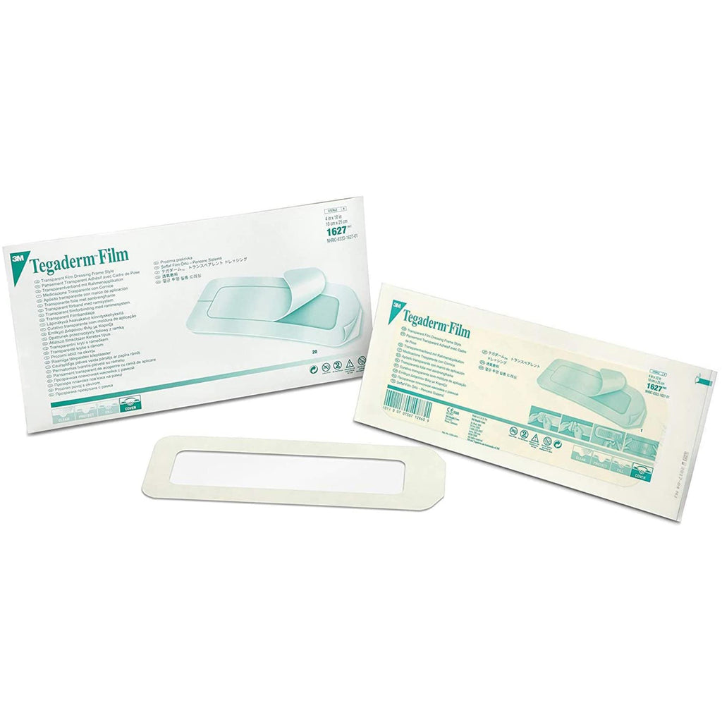 The 3M Tegaderm Transparent Frame Style Film Dressing is used to protect I.V. catheter sites and wounds, to secure devices to the skin, and to maintain a moist environment for wound healing.