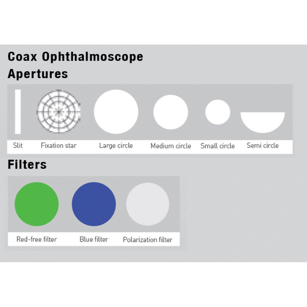 - Large - standard aperture for a dilated pupil and general examination of the eye.