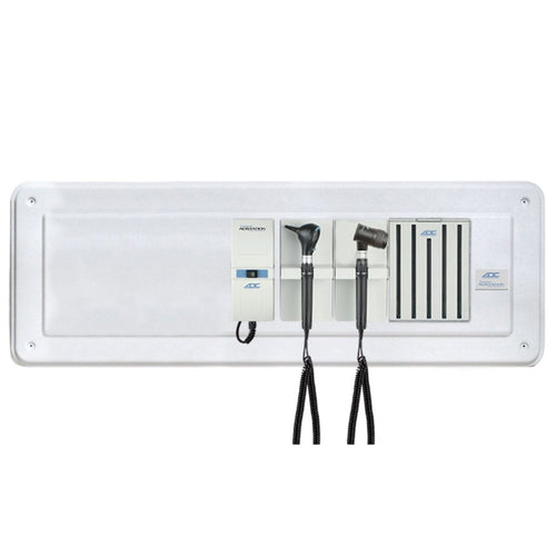 The ADC Adstation 5611-35 3.5V Wall Otoscope/Dermascope Diagnostic Set with Wallboard for ADView 2 includes an ADC Diagnostix 5420 3.5V Otoscope Head, an ADC Diagnostix 5450 3.5V Dermascope Head, a power supply base unit that includes a power switch, two 3.5V handles, an extension module, an ADC 5630 Wall Specula Dispenser, and an ADC Adstation Wallboard that allows you to easily mount your diagnostic set while leaving enough space to add and install an ADC ADView 2 Modular Diagnostic Station.