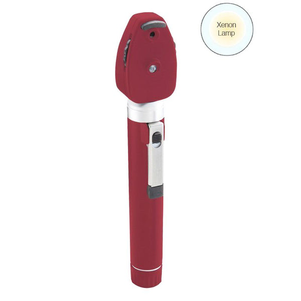 - Burgundy Ophthalmoscope with Xenon Lamp and Hard Case (#5112NBD) / Soft Case (#5112NSBD).