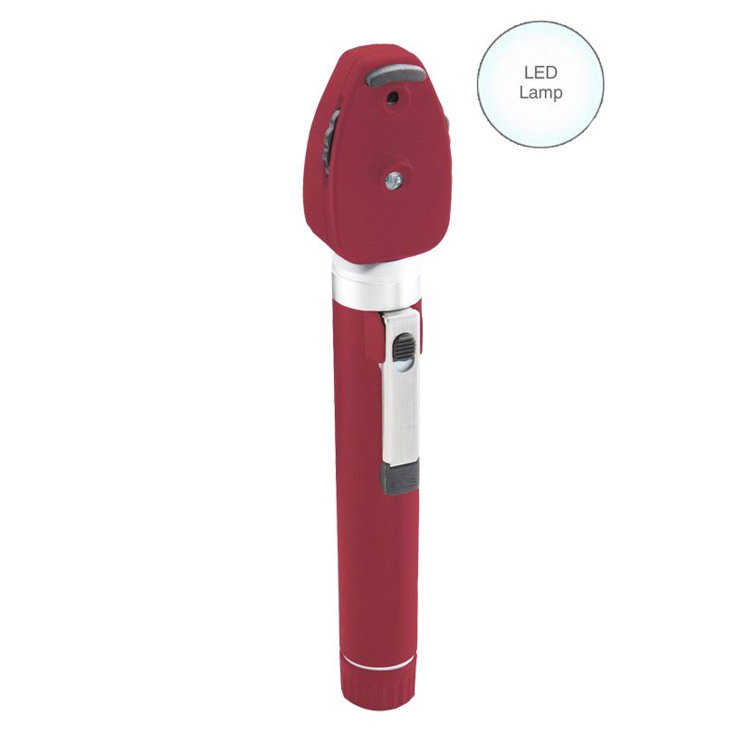 - Burgundy Ophthalmoscope with LED Lamp and Hard Case (#5112NLBD) / Soft Case (#5112NLSBD).