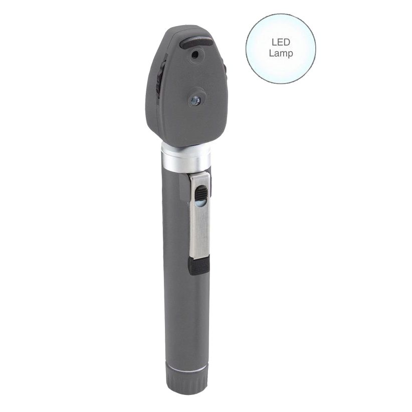 - Gray Ophthalmoscope with LED Lamp and Hard Case (#5112NLG) / Soft Case (#5112NLSG).