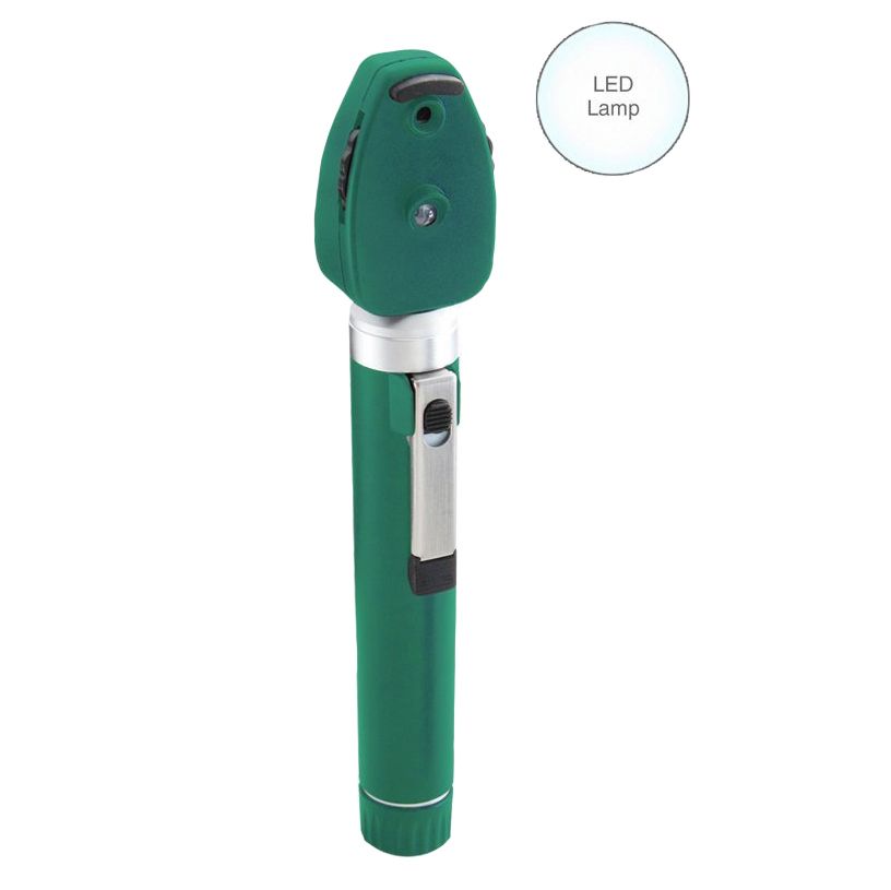 - Green Ophthalmoscope with LED Lamp and Hard Case (#5112NLGR) / Soft Case (#5112NLSGR).