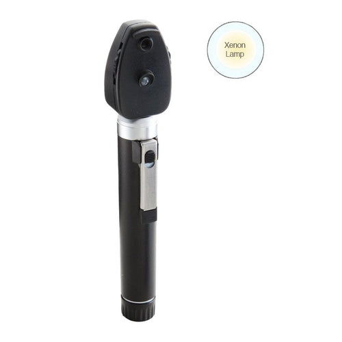 - Ophthalmoscope with Xenon Lamp is available in six colors and includes a hard case or soft case: