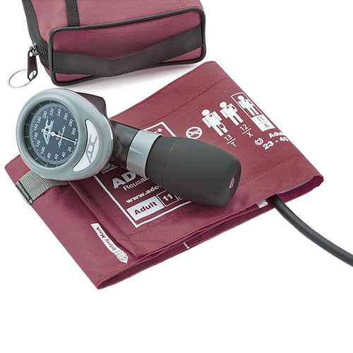 The ADC Diagnostix 788 Palm Aneroid Sphygmomanometer includes a revolutionary palm style manometer, an Adcuff Nylon Cuff, and an extra-large, color-matched, dual pocket carry case.