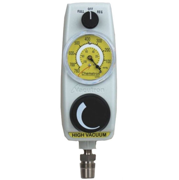 The Allied Healthcare Vacutron High Vacuum Suction Regulator is designed to provide continuous vacuum pressure at a rate up to 760 mm Hg, for procedures that require a high rate of suction.