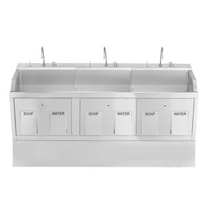 | BKM-1339883WED | 1339883WED | Lodi Scrub Sink, (3) Place Wall Mounted with Knee Action Control, Soap Dispenser, Infrared Water Control, Eyewash, Digital Timer | Lodi Scrub Sink, (3) Place Wall Mounted with Knee Action Control, Soap Dispenser, Infrared Water Control, Eyewash, Digital Timer (DROP SHIP ONLY) | 1-2 Weeks |
