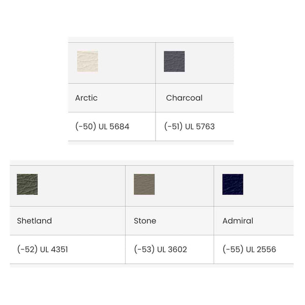 Note: Tables featuring plush upholstery tops are two-toned, stitched, with both Arctic and one of the five premium plush upholstery colors, Arctic, Charcoal, Shetland, Stone, and Admiral.