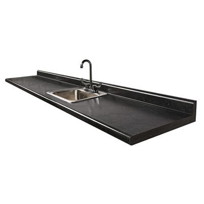 - One-piece countertop that eliminates the seam between countertop surface, backsplash, and the front edge