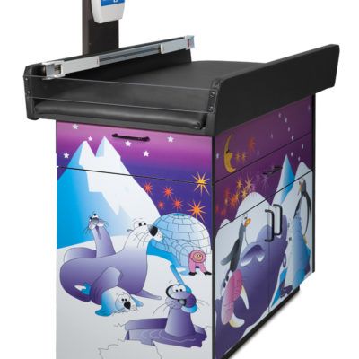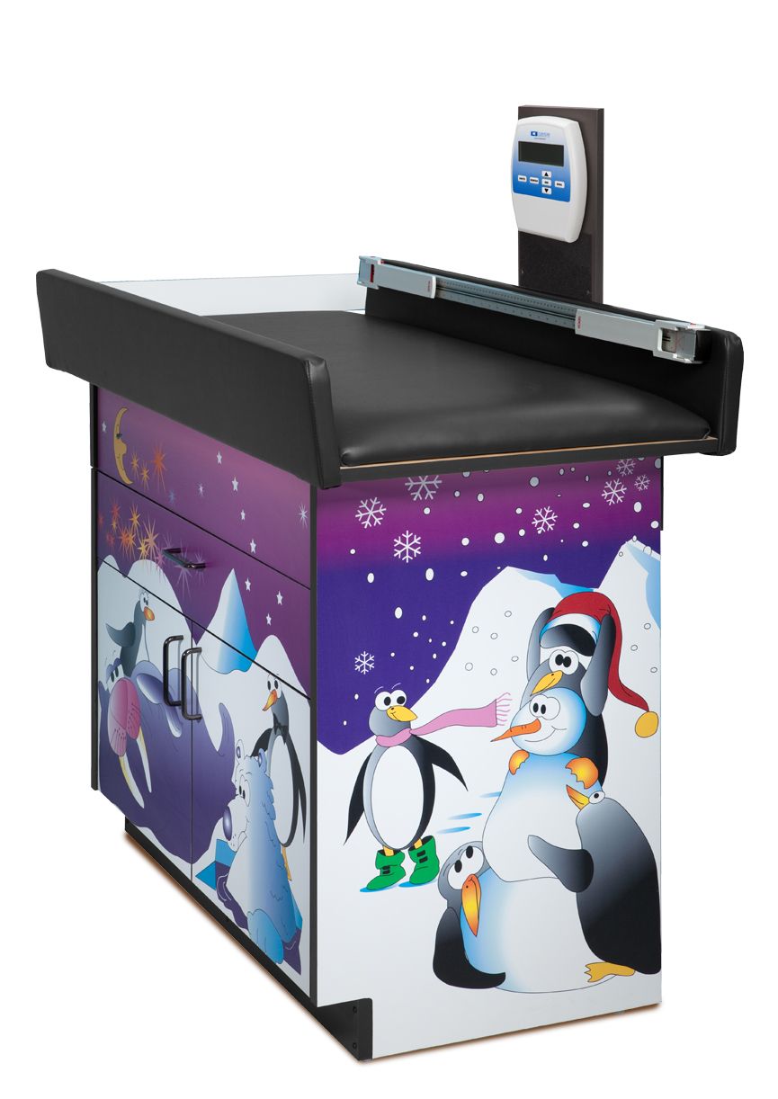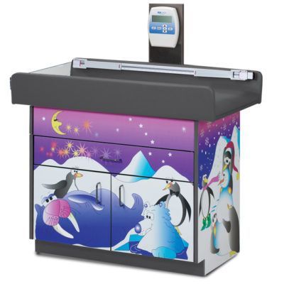 The Clinton Cool Pals Scale Table is a decorated pediatric treatment table with an attached scale for infants and small children.