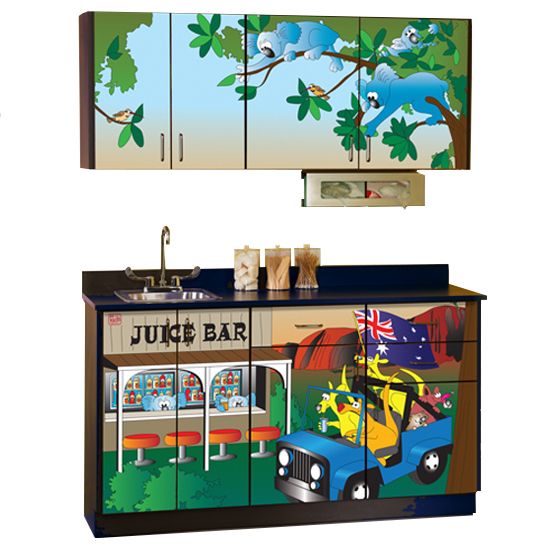 "Kangaroo Country" Base Cabinets include 4 doors with adjustable shelves and 3 drawers.
