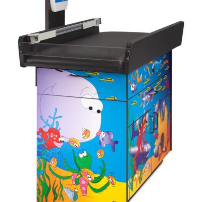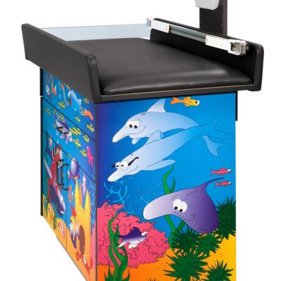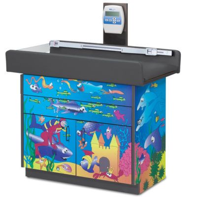 The Clinton Ocean Commotion Scale Table is a decorated pediatric treatment table with an attached scale for infants and small children.