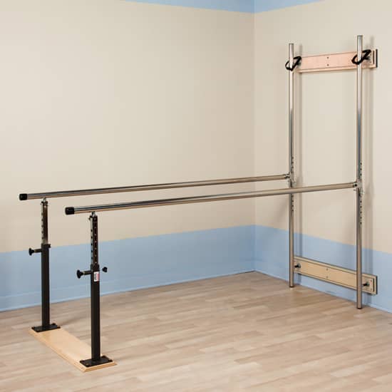 - Sturdy, steel upright construction and smooth stainless steel handrails provide strength for daily use