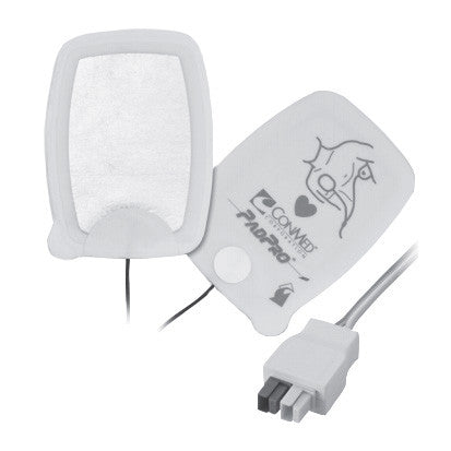 The ConMed PadPro Multifunction Electrode with Universal/Anderson Connector (10 / Case) can be utilized in environments with multiple brands of defibrillators (via PadPro adapters or PadPro cables). It is used for defibrillation, pacing, cardioversion, and monitoring, and has a long shelf life of 36 months.