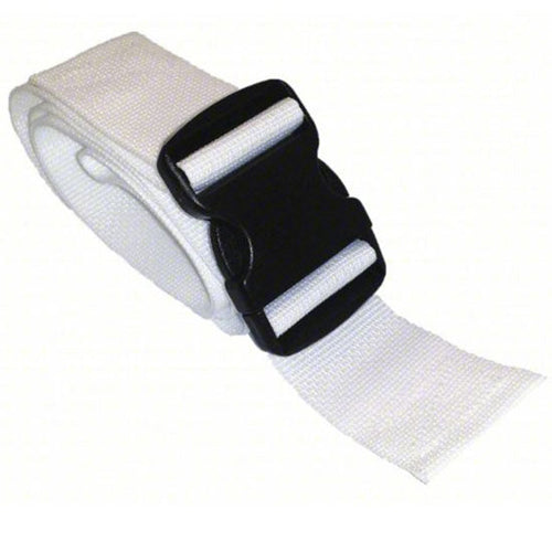 The DMS Disposable Polypropylene Strap - Plastic Double Adjust Buckle is a safety restraint designed for use with cots, stretchers, or backboards. It helps to secure patients to the emergency transport, and is user-friendly for quick application or removal. The main material maintains a reliable strength of 1800 lb in break strength, while the double adjust buckle has a 400 lb break strength. The double adjust function allows the strap to be adjusted in a dual way, making it more versatile.