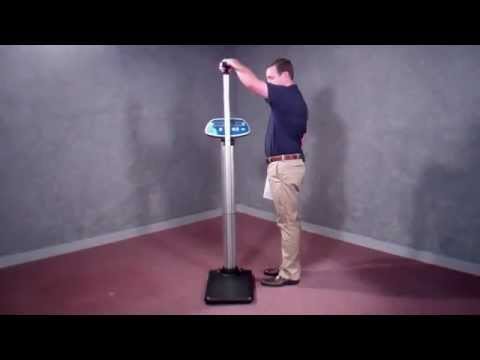 - A durable and sturdy aluminum column houses the easy-to-use height measurement rod