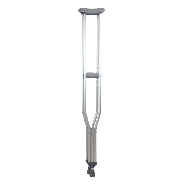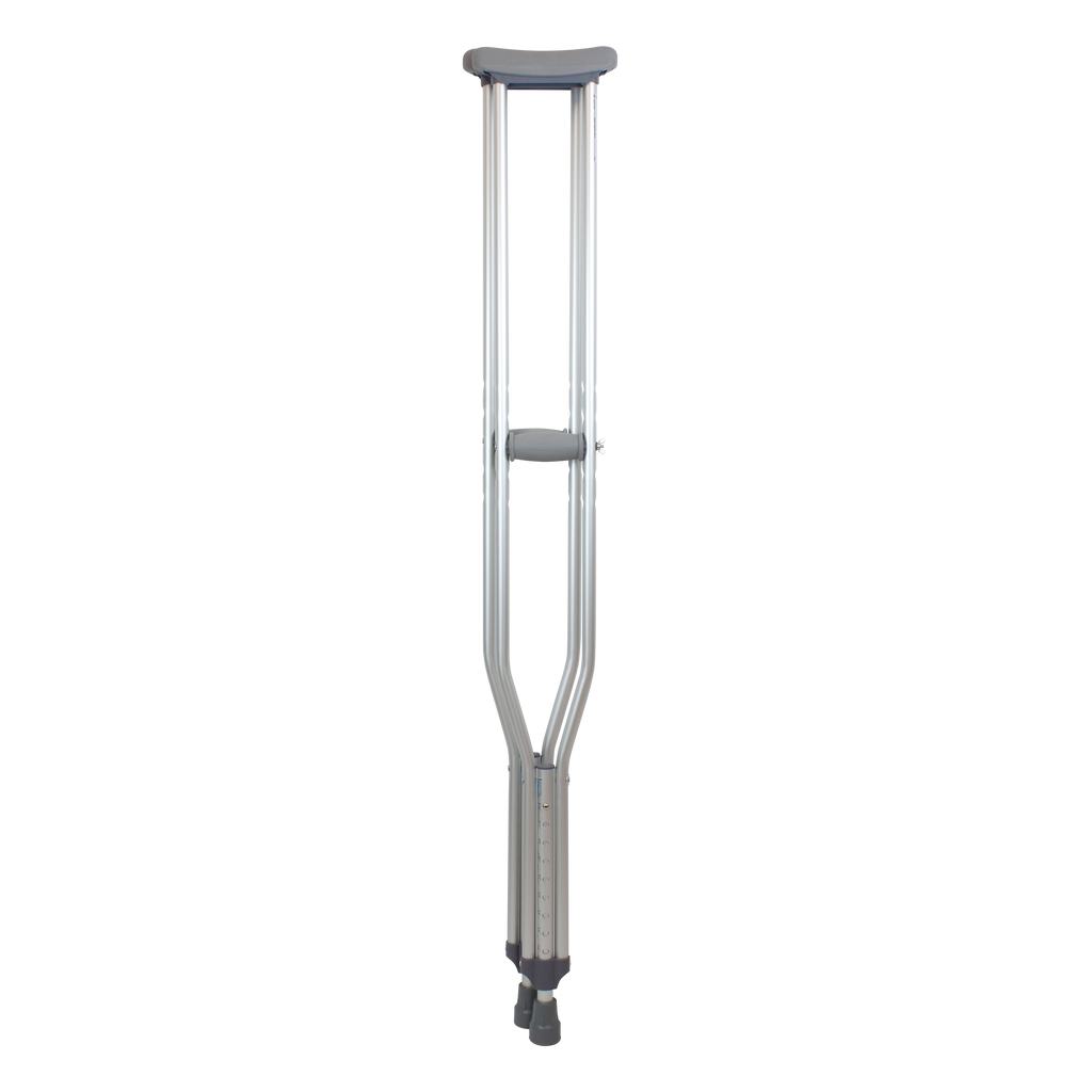 - Fully Adjustable: The lightweight, aluminum crutches are fully adjustable for a personalized, custom fit. At the push of a button adjust the forearm height in 1.5” increments and the overall height in 1” increments to accommodate the needs of a wide range of users.