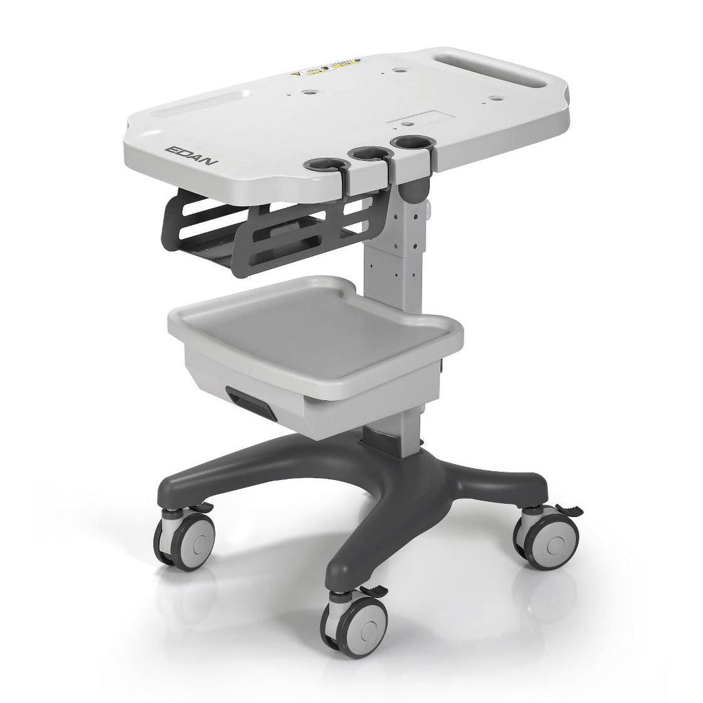 - Features built-in probe holders, an accessories drawer, a shelf, four wheels, a printer tray, and mounting screws