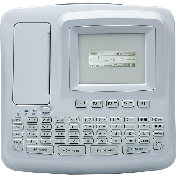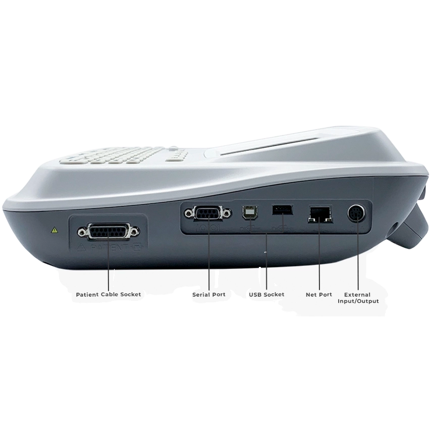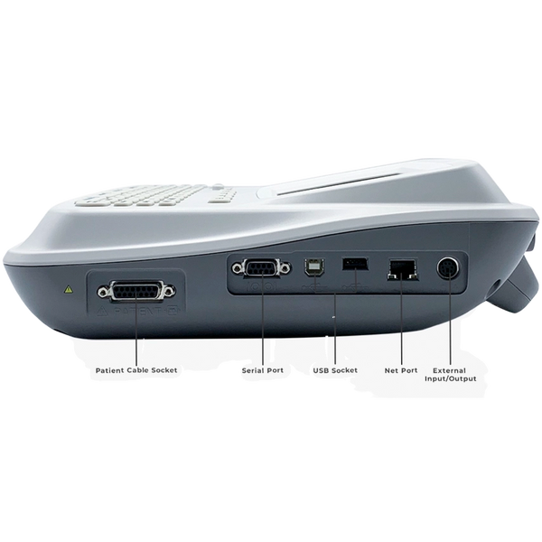 - Built-in rechargeable Li-on battery, 2500 mAh, for 1.5 hours of continuous printing, 300 ECG reports