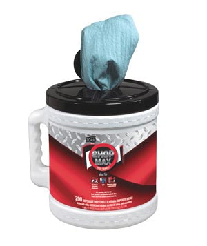 ShopMax Wiper, Centerfeed Dry Wipe Bucket, Advanced, Blue, 1-Ply, 218.33ft, 200 sht/bucket, 2 bucket/cs (90 cs/plt)