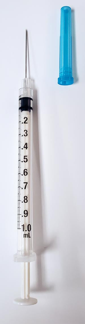 | EXL-26043 | 26043 | Tuberculin Syringe, 1cc with Needle, 26G x ½", Low Dead Space Plunger, Luer Slip, 100/bx, 10 bx/cs | Tuberculin Syringe, 1cc with Needle, 26G x ½", Low Dead Space Plunger, Luer Slip, 100/bx, 10 bx/cs | 1-2 Weeks |