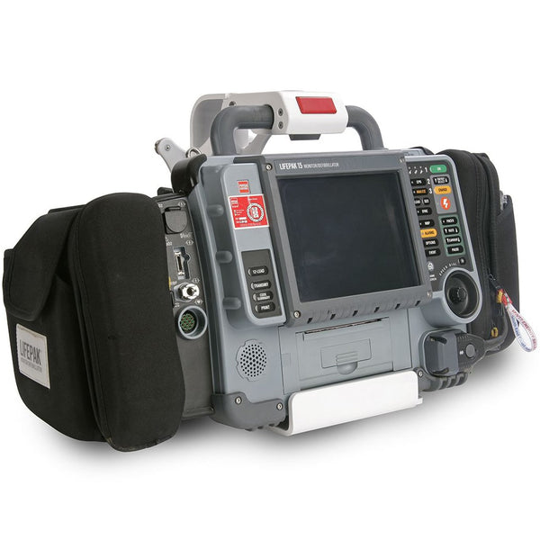 - Secures the Physio-Control LIFEPAK 15 Defibrillator (without rear pouch), keeping it stationary in a moving vehicle or surface countertop