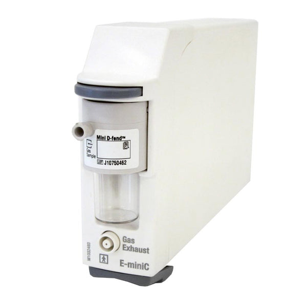 The GE E-miniC CO2 Module (#E-MINIC-00-EN) is a single width airway module that connects to GE CARESCAPE Monitors, including the GE B125, B450, and B650.