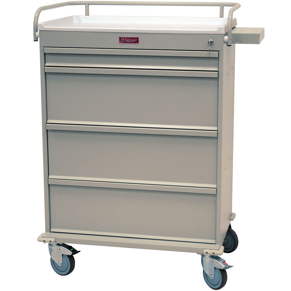 - Offers many of the same features of the large medication carts at an economical price point