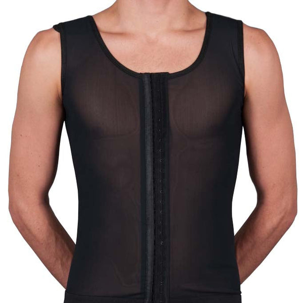 The HK Surgical Maximum Male Compression Vest (#MMV) is designed for use on the male chest, abdomen, and flanks. It has adjustable triple hook-and-eye closures, adjustable Velcro shoulder straps, reinforced flat seams, and soft, strong Powernet fabric. This garment is latex-free and machine washable.