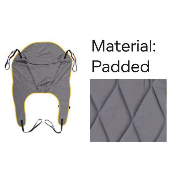 This sling is estimated to fit about 85 - 90% of patients, with integrated head support and leg padding to completely support the patient. There's also two choices of materials; the padded material is soft, and ideal for easy cleaning and maintenance, while the mesh works for water immersion such as baths.