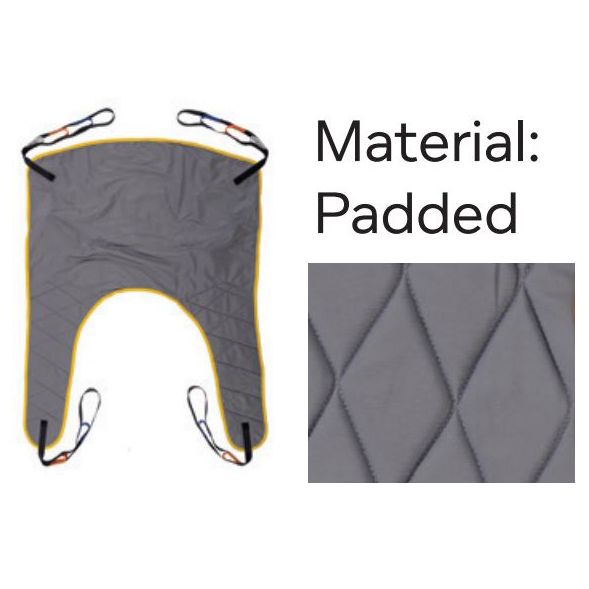 This sling comes in five sizes to fit patients of all sizes. It can be wrapped around a patient who's either sitting or lying down, and support them confidently. Customers also have the choice between padded or mesh materials. The padded makes an extra comfortable, gentle seat for the patient, and the mesh option is suitable for baths or other water immersion.