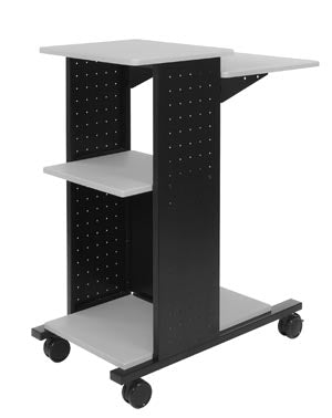 Luxor Mobile Presentation Station. The Luxor WPS4 40 Mobile Presentation Station provides a versatile solution for presenting and storing audio/visual components. This multipurpose presentation cart has four shelves set at differing heights and offers platforms that will hold a projector and laptop while providing plenty of space for a variety of AV equipment and accessories. The second shelf functions perfectly as a keyboard tray and adjusts between 32 and 40 high, accommodating multiple users. Four silent-roll 3 casters deliver total mobility, while two locking brakes keep the unit stable during presentations. An optional lockable cabinet can house IT equipment or office supplies; add an optional electric assembly and turn the WPS4C / WPS4CE into a self-contained presentation station.