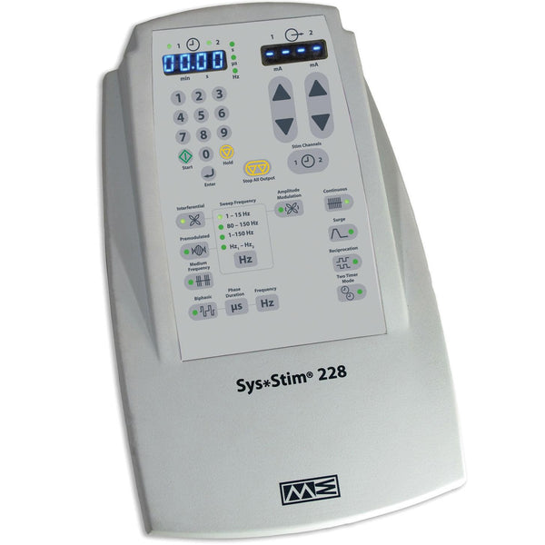 The Sys*Stim 228 is a two-channel, microprocessor controlled neuromuscular stimulator that features four discrete waveforms designed to facilitate clinical versatility. It provides the flexibility to meet virtually any clinical need and has unprecedented ease of operation.