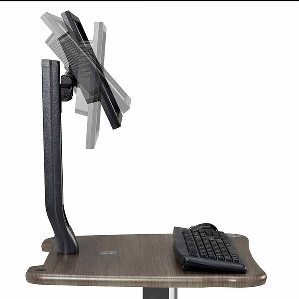 The Midmark 6212 Flat Panel PC Workstation is a mobile laptop work surface that facilitates proper posture in users. This workstation features 180 degrees of left-to-right monitor rotation that helps users maintain eye contact with patients and share content when needed.