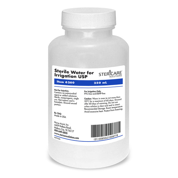 NSA-6260 6260 Irrigation Device & Suctioning Water Sterile 250mL, Screw Top Bottle, 24/cs (Rx) (70 cs/plt) (Item is Non-Returnable & Non-Refundable) Irrigation Device & Suctioning Water Sterile 250mL, Screw Top Bottle, 24/cs (Rx) (70 cs/plt) (Item is Non-Returnable & Non-Refundable)  Max weekly quantity allowed: 10 1-2 Weeks