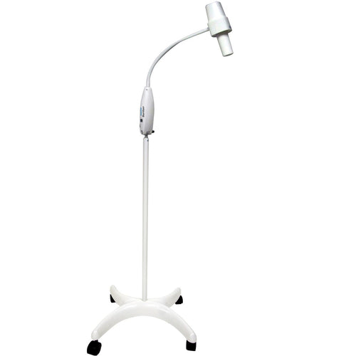 The floorstand model consisted of a 4-wheeled base, with locking features on 2 out of the 4 wheels.This portable spotlight allows caregivers to easily transfer this light from room to room, or around large space, without sacrificing power or brightness.