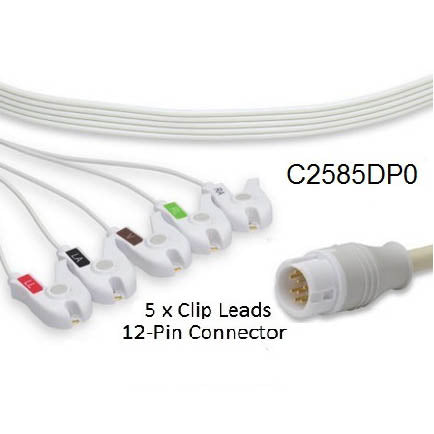 - Disposable Direct-Connect ECG Cable, 5 Leads Clip, Philips Compatible w/ OEM: M1977A (5 Leads Snap), M1986A (Freight Terms are Prepaid & Added to Invoice - Contact Vendor for Specifics)