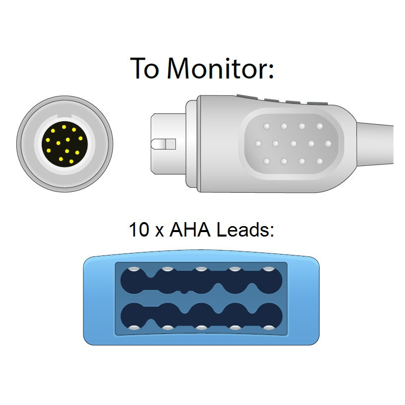 - EKG Trunk Cable, 10 Leads, Philips Compatible w/ OEM: M1663A, M1949A, M3525A, 989803125831, 989803144791, CB-735585R (Freight Terms are Prepaid & Added to Invoice - Contact Vendor for Specifics)