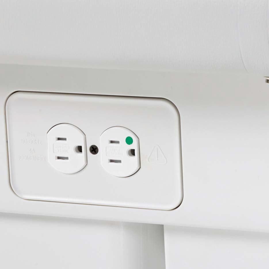 - Easy-access tamper-resistant receptacles on both sides of the chair