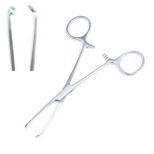 Sklar Allis Tissue Forceps are finger ring, ratcheted forceps used for grasping organs and slippery or dense tissue. They are commonly used with tonsil, vaginal, breast, and thyroid tissue. This product is straight with 4x5 teeth and a length of 5 inches.