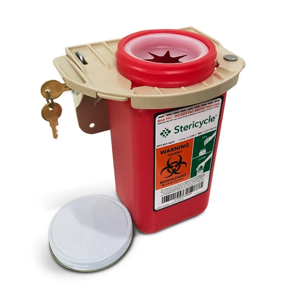 - Designed for use with 1.4 quart, 1 gallon, 2 gallon and 3 gallon Stericycle mailback sharps containers