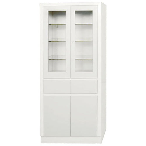 - Two lockable upper doors with glass panes for visibility and security