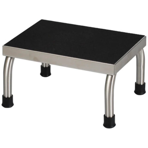- Non-slip, corrugated rubber step tread for secure footing