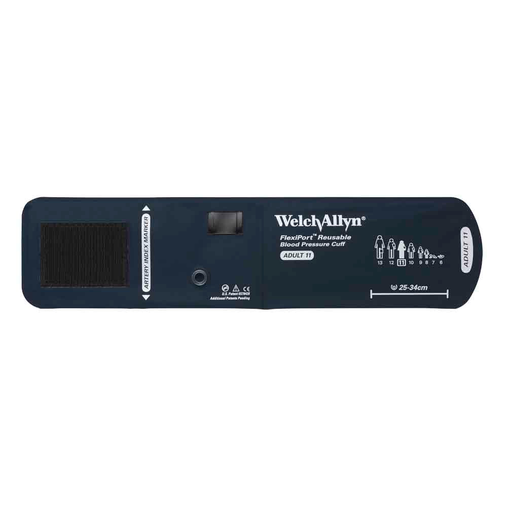 The Welch Allyn FlexiPort Reusable Blood Pressure Cuff offers true standardization with the single-point FlexiPort connection. The FlexiPort connection can enable virtually any device to work with Welch Allyn FlexiPort Blood Pressure Cuffs without the hassle of traditional cuff tubes and blood pressure connectors.
