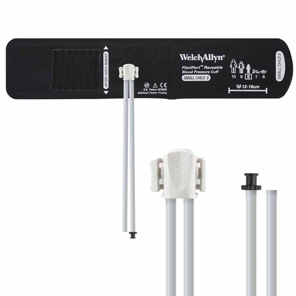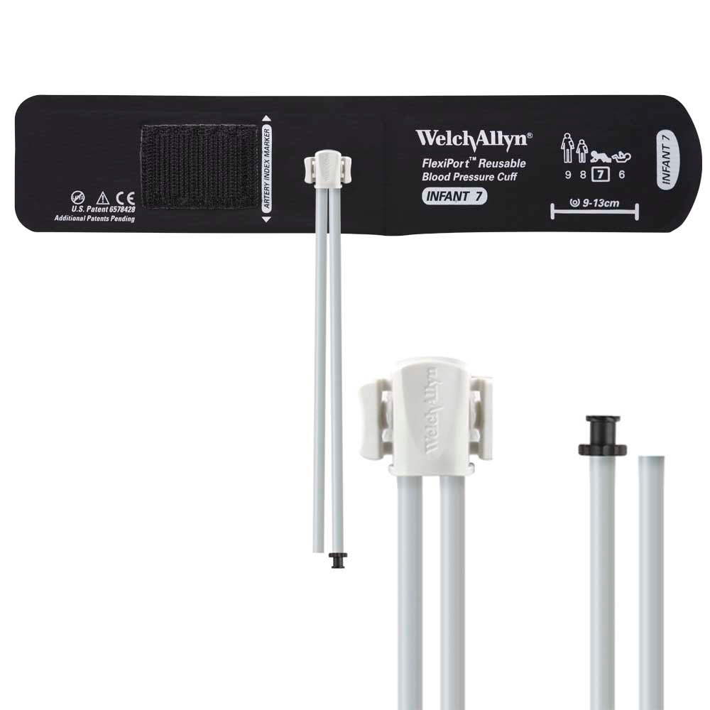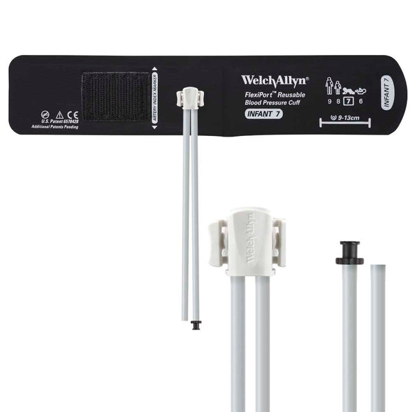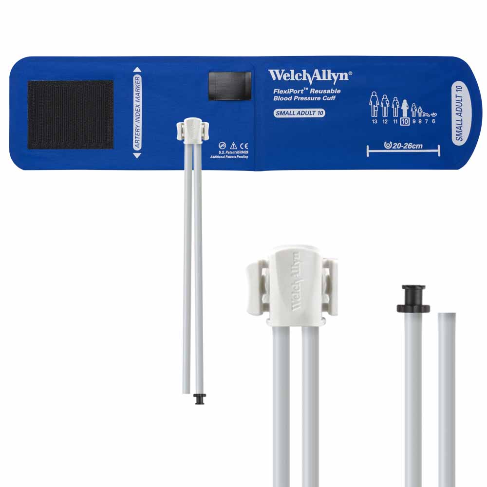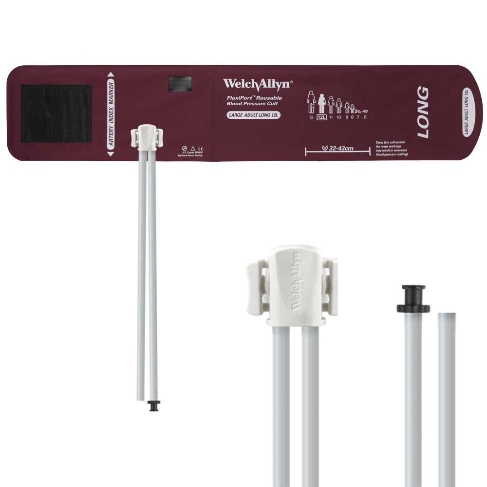 The Welch Allyn FlexiPort Reusable Blood Pressure Cuff with Two-Tube Tri-Purpose Connector offers true standardization with the single-point FlexiPort connection. The FlexiPort connection can enable virtually any device to work with Welch Allyn FlexiPort Blood Pressure Cuffs without the hassle of traditional cuff tubes and blood pressure connectors.